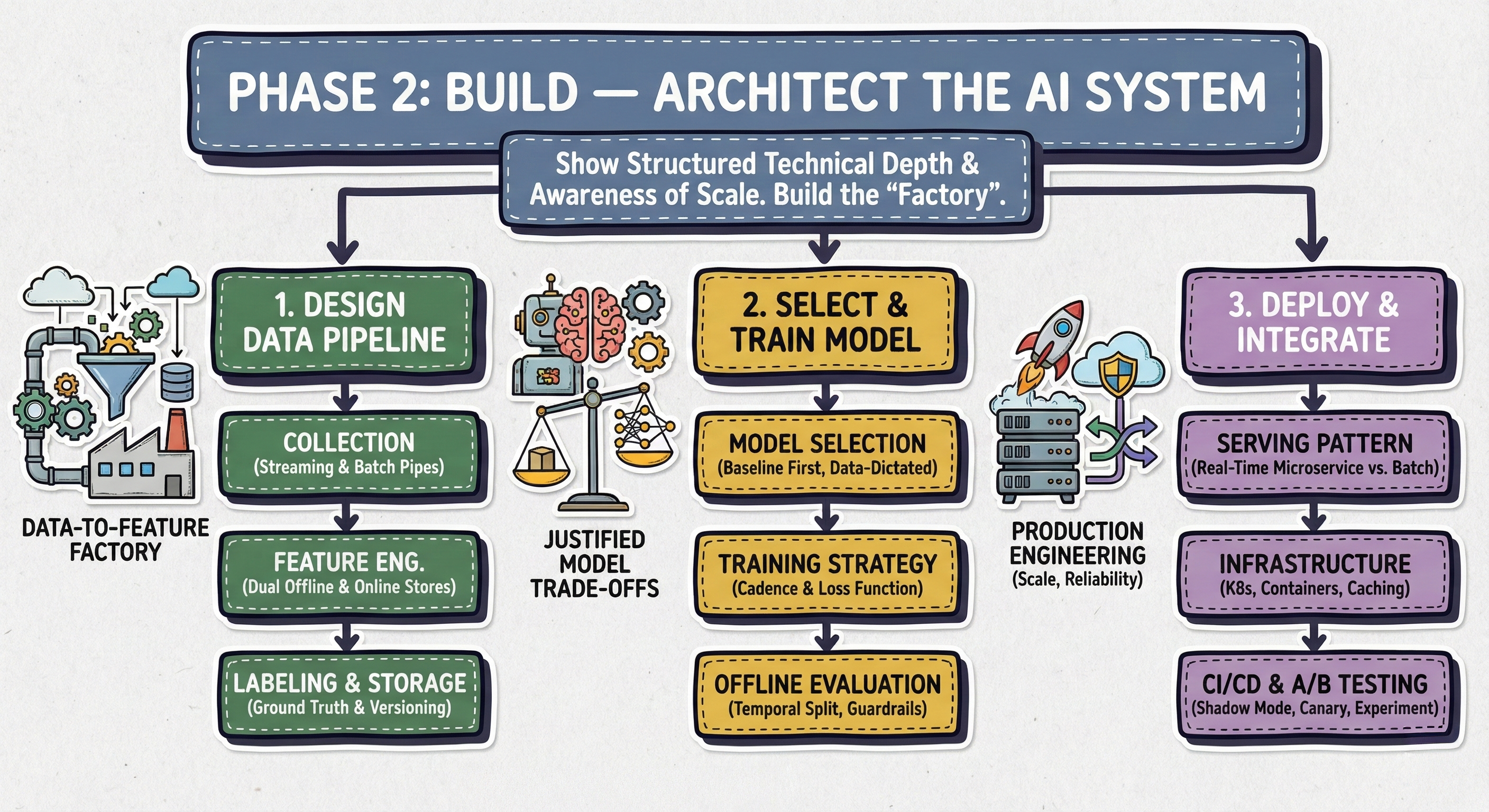 The main goal of this phase is to show structured technical depth and awareness of scale. You will move from a high-level sketch to architecting the actual "factory" that powers the AI system.